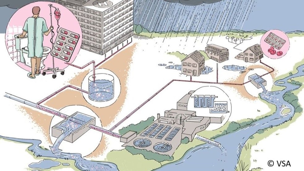 Abwasserreinigungsanlagen halten antimikrobielle Resistenzen und auch Antibiotika mit zunehmendem Ausbaustandard immer besser zurück. Jedoch stellen Mischwasserentlastungen eine dominante Eintragsquelle in die Gewässer dar. Das vorliegende Merkblatt zeigt, dass einerseits verstärkte Massnahmen bei der Abwasserbewirtschaftung in Gesundheitsbetrieben und andererseits Optimierungen bei der Kanalnetzbewirtschaftung die Einträge in die Gewässer weiter reduzieren. Der Verband Schweizer Abwasser- und Gewässerschutzfachleute (VSA) nimmt diese wichtigen Aufgaben in enger Zusammenarbeit mit den relevanten Akteuren in Angriff.