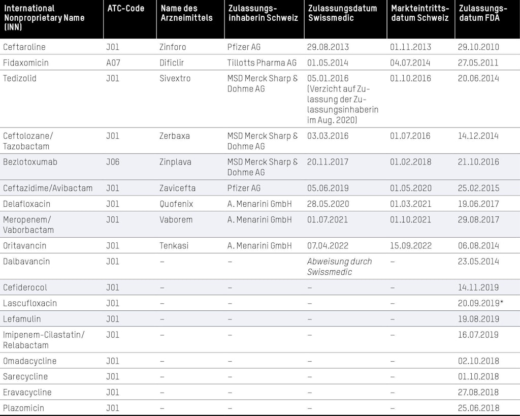 Aktuelle Verfügbarkeit neuer Antibakterieller Substanzen in der Schweiz (2023)