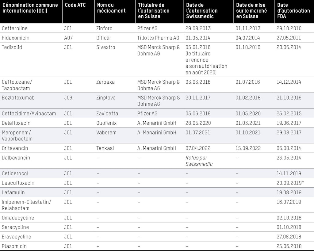 Disponibilité actuelle des nouvelles substances antibactériennes en Suisse (2023)