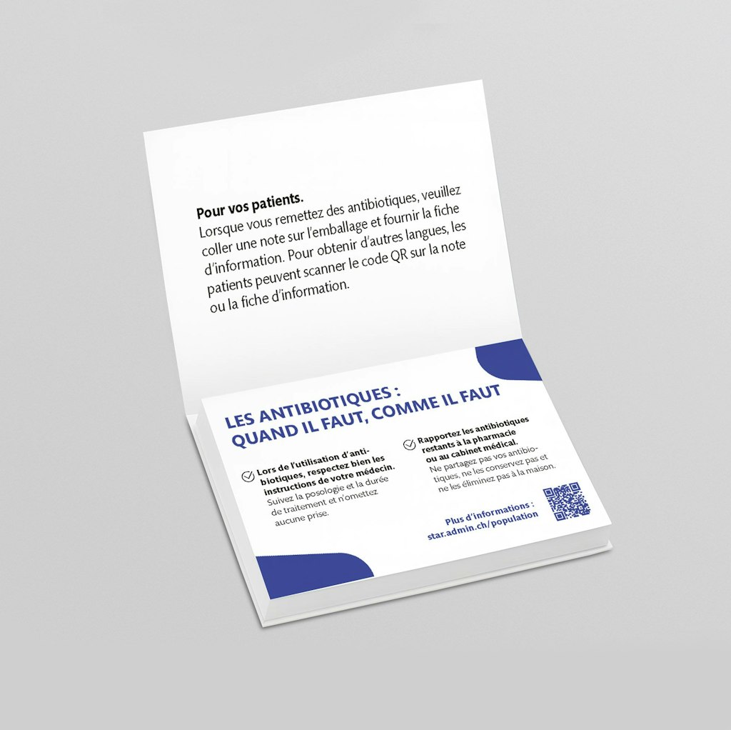La fiche d'information contient des instructions essentielles pour la bon utilisation et l'élimination des antibiotiques. Elle fournit des informations générales sur la résistance aux antibiotiques et explique pourquoi il n'est souvent pas nécessaire de prendre des antibiotiques. Elle peut être utilisée dans le cadre d'un entretien de conseil ou comme information complémentaire lors de la délivrance d'antibiotiques dans les cabinets médicaux et les pharmacies.