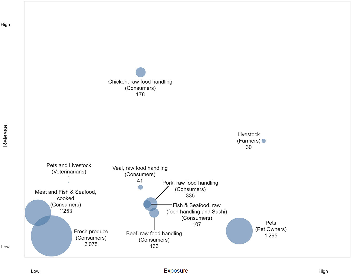 I lavori si basano su una carta del rischio realizzata attraverso le valutazioni degli esperti. La carta mostra quali sono le vie di trasmissione di batteri resistenti nella catena alimentare svizzera e nel contatto con animali domestici e da reddito. I risultati vedono nel pollo crudo la tipologia di carne maggiormente esposta a batteri resistenti. Poiché nelle cucine svizzere molte preparazioni sono a base di pollo, è altamente probabile che questi ultimi possano essere trasmessi attraverso questo canale. Inoltre, in molte abitazioni vivono animali domestici spesso a stretto contatto con le persone. Anche in questo caso vi è un’alta probabilità di trasmissione di batteri resistenti.