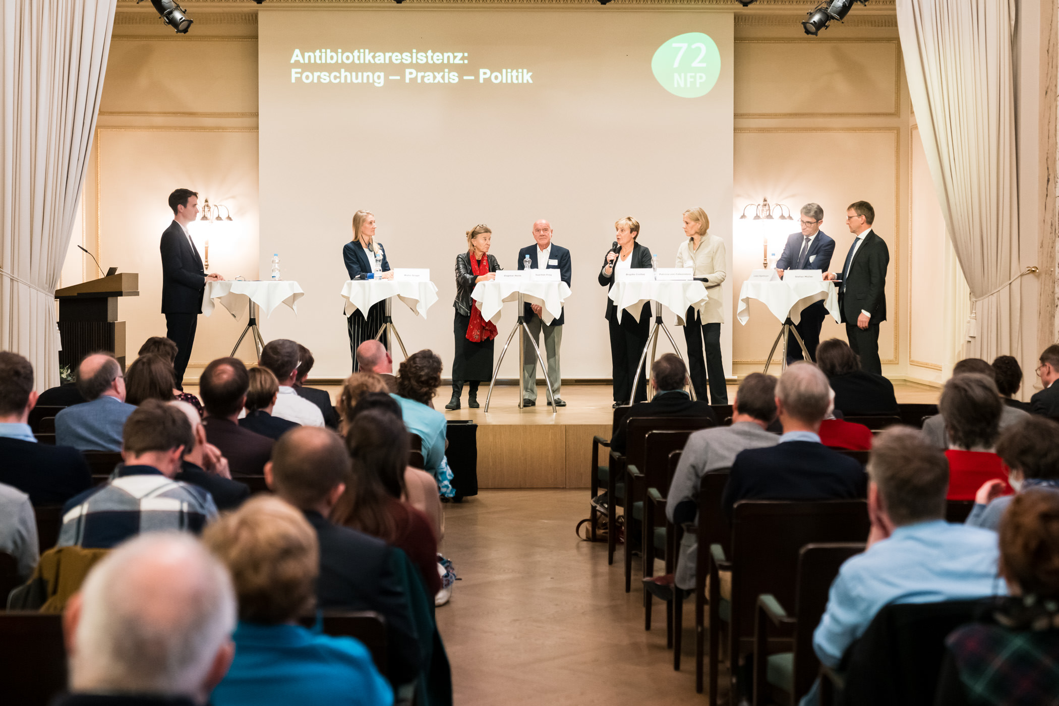 Dal punto di vista della politica nazionale, le consigliere nazionali Brigitte Crottaz (PS, Vaud) e Patricia von Falkenstein (LDP, Basilea Città) hanno inoltre identificato elementi importanti dove occorre creare le giuste premesse al fine di poter tradurre in pratica le nuove conoscenze scientifiche. Patricia von Falkenstein ha illustrato per esempio che negli scorsi anni sono stati presentati, purtroppo senza alcun successo, vari interventi parlamentari che intendevano creare condizioni quadro migliori per lo sviluppo di nuovi antibiotici. In linea con le conclusioni del PNR 72, ha chiesto ai responsabili politici di occuparsi finalmente di questo problema.